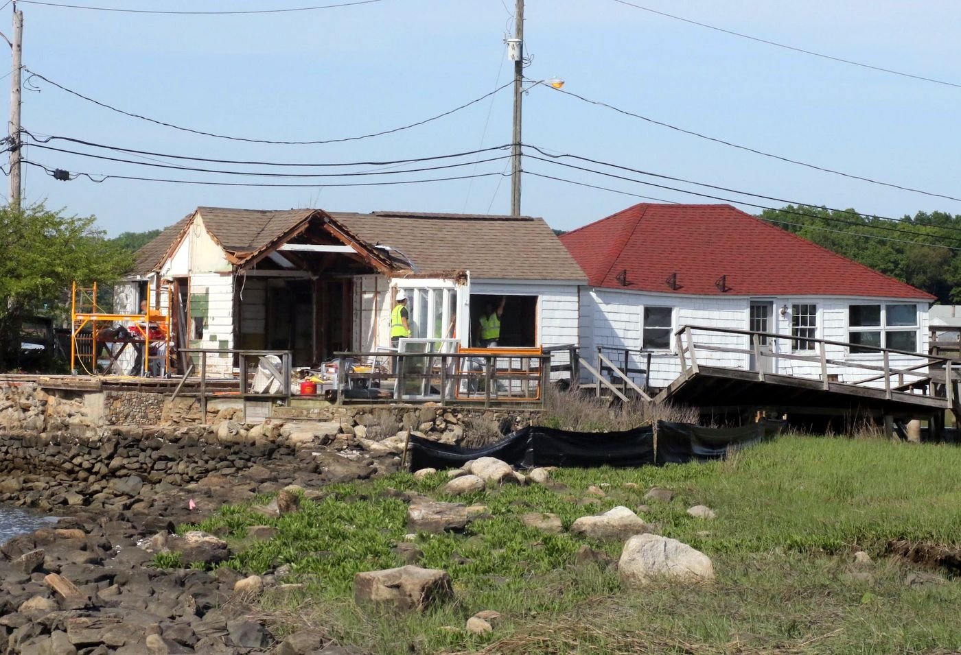 A pair of summer cottages was built on a small marsh island in the narrow channel between Sherwood Millpond and Compo Cove, in Westport, CT. Construction involved filling of tidal wetlands to raise the ground level, as well as armoring the shoreline with boulders and seawalls